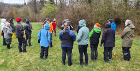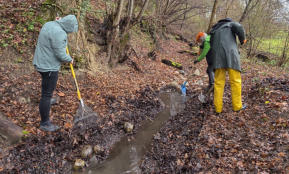 Samstag, 14. März 2026Pflegearbeiten in der Brüelmatte: Vereinskooperation für die Natur über die Gemeindegrenze hinwegDie Natur macht bekanntlich an der Gemeindegrenze nicht halt, und so fand auch dieses Jahr eine langjährige Vereinskoopera-tion erneut statt: Am 14. März führten der Natur- und Vogel-schutzverein Unterentfelden und der gleichnamige Verein aus Suhr gemeinsam einen Pflegeeinsatz in der Brühlmatte zwischen Unterentfelden und Suhr durch.Das Wetter meinte es diesmal nicht gut mit den Vereinen. An diesem Samstagmorgen war kaltes, regnerisches Wetter angesagt. Infolge-dessen entschied man sich im Vorfeld gegen das Schneiden der Baumreihe bei den drei Brüelmatte-Weihern, und auch das traditio-nelle gemeinsame Znüni nach dem Einsatz wurde abgesagt.Zu Beginn wurde die motivierte Gruppe, welche aus immerhin 21 Personen bestand, in drei Teams aufgeteilt: Ein Team schnitt den Zaun bei den 3 Weihern neben der Holzbrücke frei und entsorgte das Grüngut. Am Rand des nahegelegenen Wäldchens wurden ebenfalls Schnittarbeiten durchgeführt. Eine zweite Gruppe legte das Bächlein am Waldrand beim Bärenplatz frei und legte weitere Asthaufen als Kleinstrukturen an. Die dritte Gruppe widmete sich den Unkentümpeln im Hang beim Gönhardwald. Hier wurden Wasserlöcher wiederhergestellt und neue gegraben. In den unscheinbaren sumpfigen Löchern im Wald kann die seltene Gelbbauchunke beobachtet werden. Die gefährdete Amphibienart bevorzugt flache, karge Pfützen, die auch austrocknen können. Damit riskiert die Art zwar, dass die geschlüpften Kaulquappen vertrocknen, jedoch werden durch temporäre Gewässer auch die Fressfeinde im Wasser immer wieder eliminiert. Man zählt das Amphib darum zu den Pionierarten, welche oft als erste eine neue Feuchtstelle be-siedeln. Dabei werden auch gerne sonnige, wenig befahrene Rad-spurtümpel zur Laichablage genutzt.Text: Lukas Kammermann; Fotos: Stefan Ballmer und Marisa Tomasi